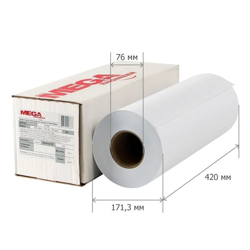 Широкоформатная бумага Mega Engineer 420мм х 175м, 80г/м2, белизна 146% CIE
