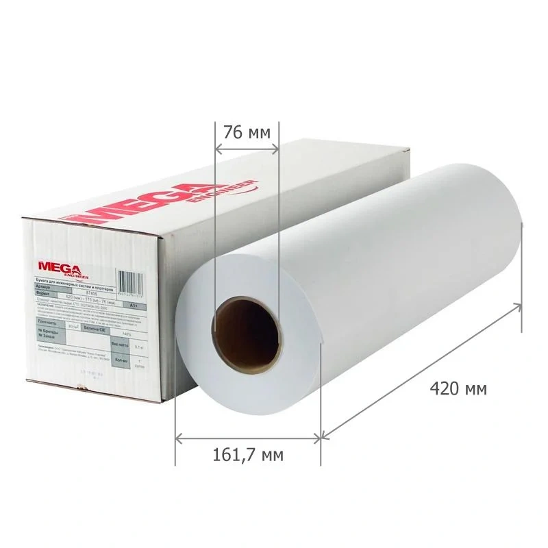 Широкоформатная бумага Mega Engineer Bright White 420мм х 150м, 80г/м2, белизна 169% CIE