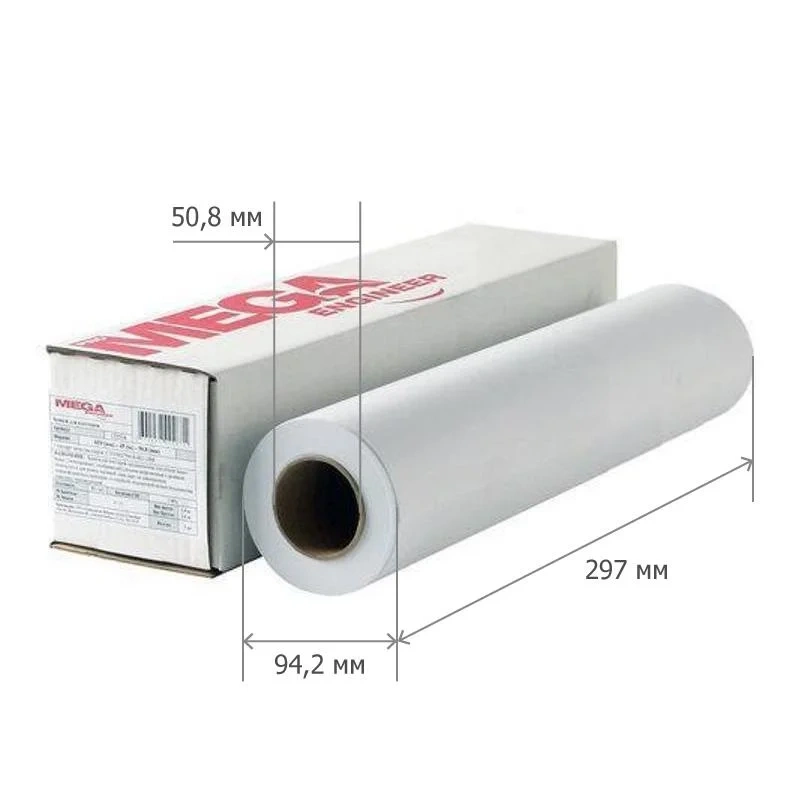 Широкоформатная бумага Mega InkJet 297мм х 45м, 80г/м2, белизна 146%CIE