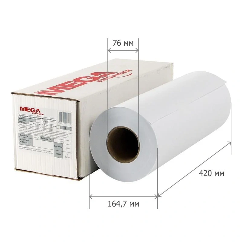 Широкоформатная бумага Mega InkJet 420мм х 175м, 70г/м2, белизна 146%CIE