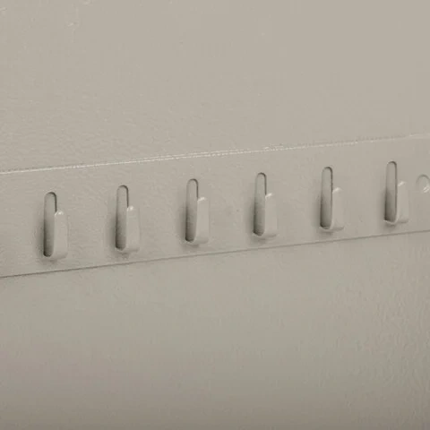 Изготовлен из прочной стали толщиной 0,8 мм и оснащен надёжным замком. Вмещает 90 ключей. Для размещения каждого ключа в шкафчике предусмотрен брелок с ярлычком. Размер - 300х240х80 мм.