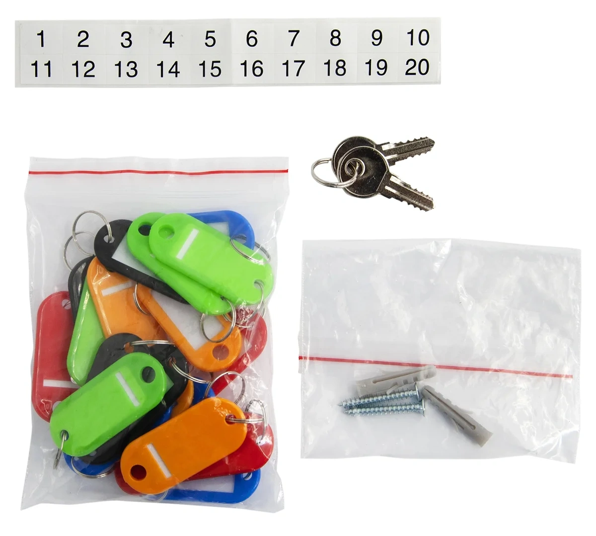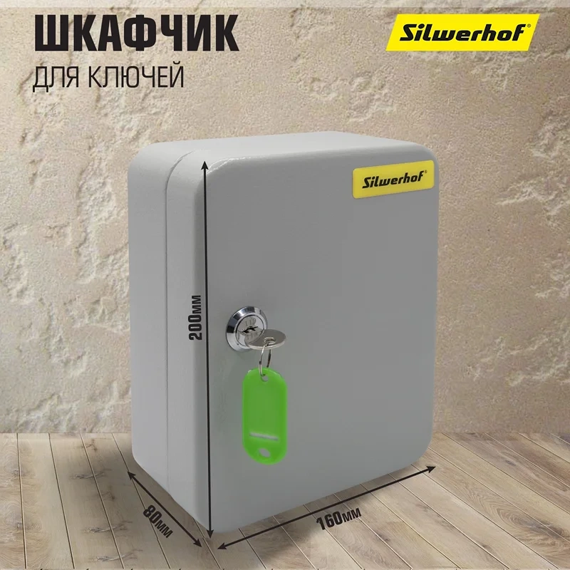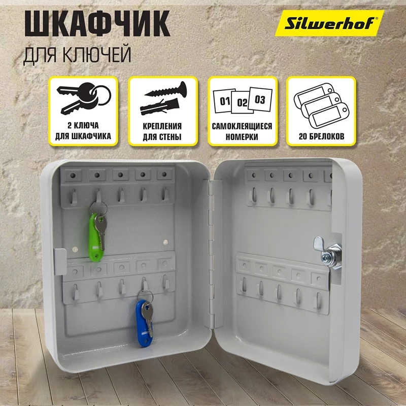 Шкаф для ключей Silwerhof на 20 ключей, 200x160x80мм, 20 брелоков, серый металл