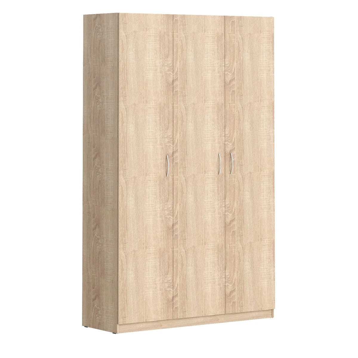 Широкий трехстворчатый шкаф для одежды и белья KANN подойдет для использования в гостинице или дома. Размеры - 1304х2100х450 мм, цвет – Дуб Сонома Светлый. Оснащен большим количеством полочек для постоянного или временного хранения одежды, которые закрыты 3 дверцами из ЛДСП под цвет шкафа. На дверцах установлены стильные металлические ручки. Конструкция оснащена прочными силовыми креплениями – эксцентриковыми стяжками. Все торцы основных элементов надежно защищены кромкой ПВХ – 2 мм. Регулируемые по высоте опоры обеспечат шкафу устойчивость на неровном полу.