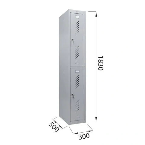 Шкаф имеет 2 раздельные секции и предназначен для 2 пользователей. На дверях установлены ключевые замки (2000 комбинаций). На каждую дверь в комплекте 2 ключа.
