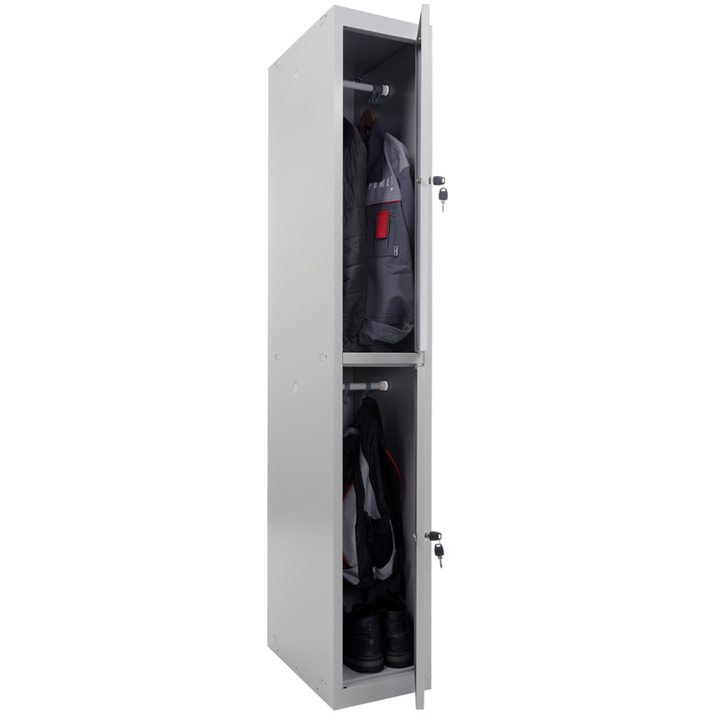 Шкаф, базовый модуль. Комплектуется дополнительным модулем для выстраивания ряда шкафов необходимой длины. Предназначен для хранения одежды в производственных, спортивных и других помещениях, хоз. инвентаря, а также для организации камер хранения. жесткий корпус, усилен сварной рамой вертикальная сборка при помощи зацепов и заклепок ключевой замок «Практик» (2000 комбинаций) вентиляционные отверстия в дверях и задней стенке модульная система локеров позволяет ставить в ряд любую комбинацию моделей конструкция шкафов позволяет скреплять их между собой возможность наращивать секции в ряд за счет общей боковой стенки. Все модели совместимы возможность установки дверей с левой или правой стороной открывания комплектация: полки, перекладина, крючки поставляются в разобранном виде