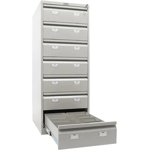 Картотечный шкаф обеспечивает эффективный и рациональный способ хранения документов формата А5 (149х210 мм). Телескопические направляющие обеспечивают плавный ход ящика даже при полной нагрузке.