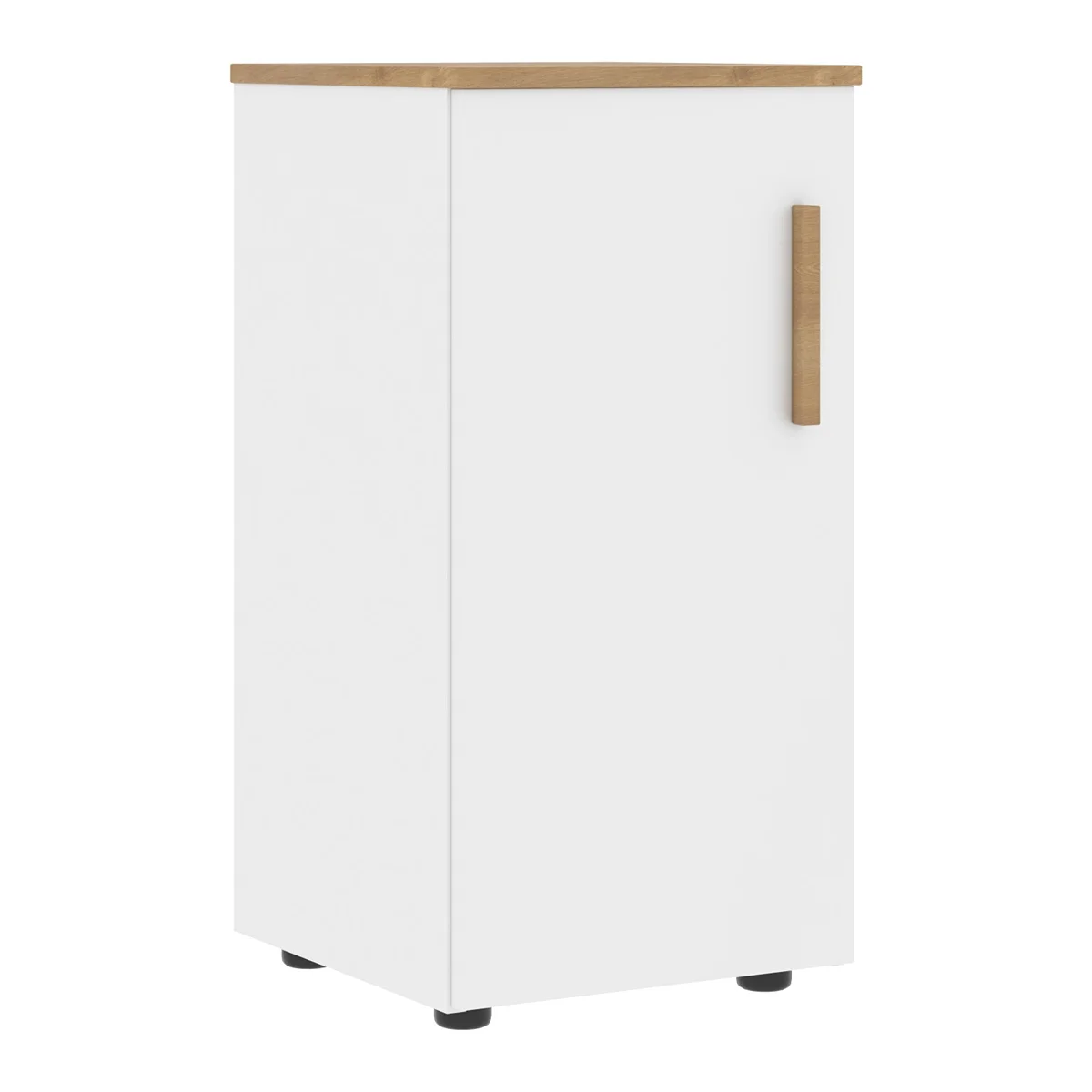 Шкаф колонка с глухой малой дверью (L) и топом FLC 40.1(L) Белый премиум/Дуб Гамильтон 404х429х818