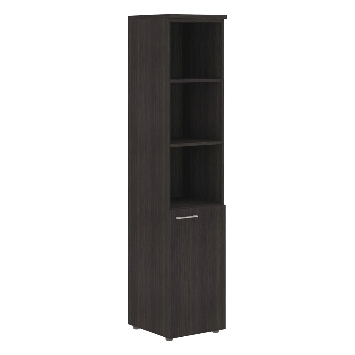 Универсальный шкаф-стеллаж XTEN для офисного или домашнего использования. Размеры - 432х1955х432 мм, тип - правосторонний, цвет - Дуб Юкон Модерн. Шкаф имеет солидный топ – 25 мм. Оснащен 5 полками, две нижние полки закрыты дверцей из ЛДСП, три верхние - открытые. На дверце установлена долговечная и стильная металлическая ручка. Конструкция шкафа оснащена прочными силовыми креплениями – эксцентриковыми стяжками. Регулируемые по высоте опоры обеспечат шкафу устойчивость на неровном полу.