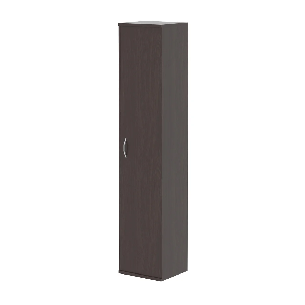 Компактный и высокий шкаф IMAGO для офисного или домашнего использования. Размеры - 406х1975х365 мм, тип – правосторонний, цвет – Венге Магия. Оснащен 5 просторными полочками, которые закрываются дверцей из ЛДСП под цвет шкафа. На дверце установлена стильная металлическая ручка. Конструкция оснащена прочными силовыми креплениями – эксцентриковыми стяжками. Все торцы основных элементов шкафа надежно защищены кромкой ПВХ – 2 мм. Регулируемые по высоте опоры обеспечат устойчивость на неровном полу.
