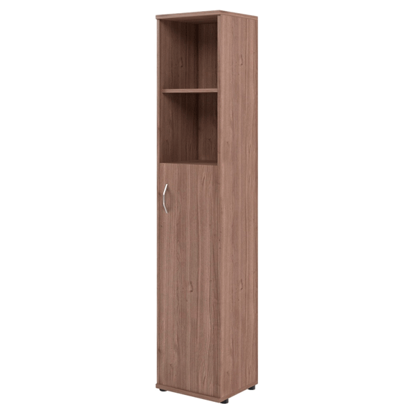 Компактный и высокий шкаф-стеллаж IMAGO для офисного или домашнего использования. Размеры - 406х1975х365 мм, тип – правосторонний, цвет – Ясень Шимо. Оснащен 5 просторными полочками, 3 нижние закрываются дверцей из ЛДСП под цвет стеллажа, 2 верхние - открытые. На дверце установлена стильная металлическая ручка. Конструкция оснащена прочными силовыми креплениями – эксцентриковыми стяжками. Все торцы основных элементов стеллажа надежно защищены кромкой ПВХ – 2 мм. Регулируемые по высоте опоры обеспечат устойчивость на неровном полу.