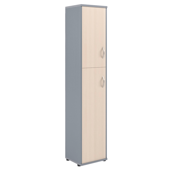 Компактный и высокий шкаф IMAGO для офисного или домашнего использования. Размеры - 406х1975х365 мм, тип – левосторонний, цвет – Клен/Металлик. Оснащен 5 просторными полочками, 3 нижние и 2 верхние отдельно закрываются дверцами из ЛДСП другого цвета. На дверцах установлены стильные металлические ручки. Конструкция оснащена прочными силовыми креплениями – эксцентриковыми стяжками. Все торцы основных элементов шкафа надежно защищены кромкой ПВХ – 2 мм. Регулируемые по высоте опоры обеспечат устойчивость на неровном полу.