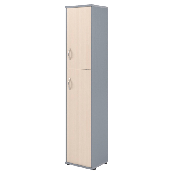 Компактный и высокий шкаф IMAGO для офисного или домашнего использования. Размеры - 406х1975х365 мм, тип – правосторонний, цвет – Клен/Металлик. Оснащен 5 просторными полочками, 3 нижние и 2 верхние отдельно закрываются дверцами из ЛДСП другого цвета. На дверцах установлены стильные металлические ручки. Конструкция оснащена прочными силовыми креплениями – эксцентриковыми стяжками. Все торцы основных элементов шкафа надежно защищены кромкой ПВХ – 2 мм. Регулируемые по высоте опоры обеспечат устойчивость на неровном полу.