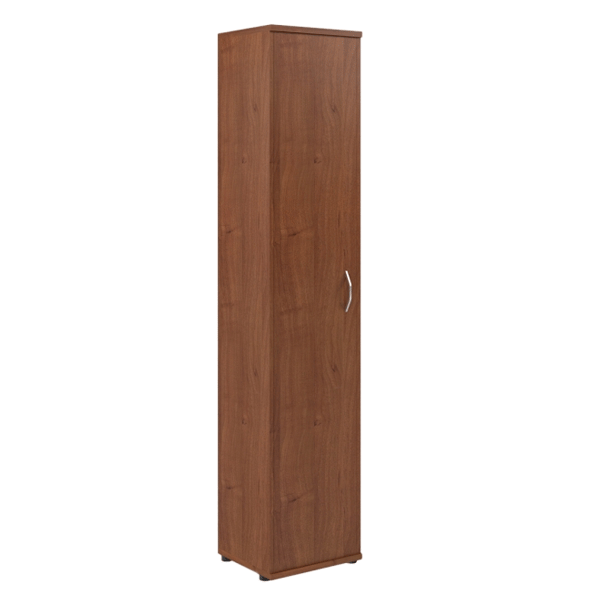 Универсальный шкаф высокий левый IMAGO для офисного или домашнего использования. Размеры - 406х1975х365 мм, цвет - Орех Французский. Оснащен 5 полками, которые закрывает дверца из ЛДСП. Шкаф оснащен регулируемыми опорами для компенсации неровностей пола.
