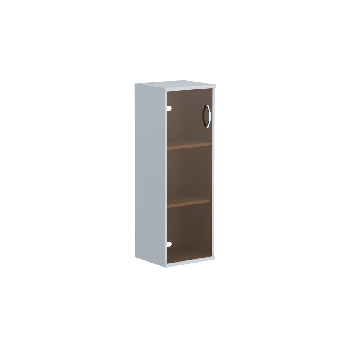 Компактный шкаф IMAGO для офисного или домашнего использования. Размеры - 406х1200х365 мм, цвет - Металлик. 3 полки, стеклянный фасад, надежная защита торцевых поверхностей - кромка ПВХ 2 мм. Шкаф оснащен регулируемыми опорами для компенсации неровностей пола.