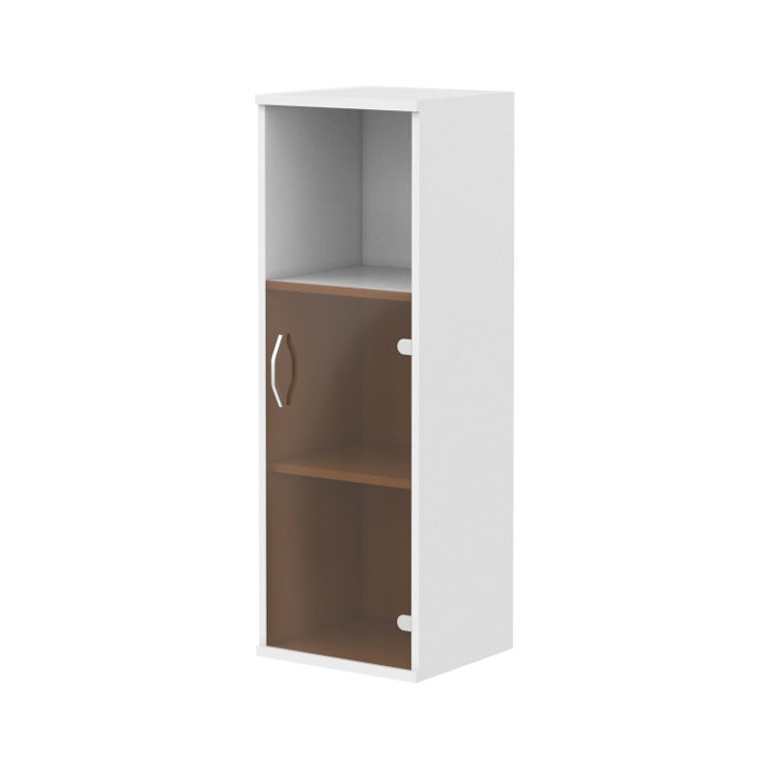 Универсальный среднегабаритный шкаф IMAGO для офисного или домашнего использования. Размеры - 406х1200х365 мм, цвет - белый. 3 полки, 2 нижние закрыты стеклянной дверцей, надежная защита торцевых поверхностей - кромка ПВХ 2 мм. Шкаф оснащен регулируемыми опорами для компенсации неровностей пола.