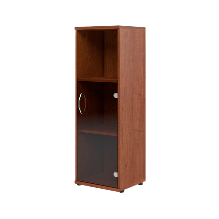 Универсальный среднегабаритный шкаф IMAGO для офисного или домашнего использования. Размеры - 406х1200х365 мм, цвет - Орех Французский. 3 полки, 2 нижние закрыты стеклянной дверцей, надежная защита торцевых поверхностей - кромка ПВХ 2 мм. Шкаф оснащен регулируемыми опорами для компенсации неровностей пола.