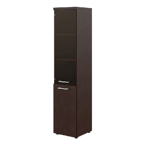Универсальный и солидный комбинированный шкаф TORR-Z для офисного или домашнего использования. Размеры - 432х1968х450 мм, тип - левосторонний, цвет - Венге Магия. Данная модель выполнена в современном и эффектном дизайне, благодаря чему придаст кабинету более презентабельный вид. Шкаф имеет солидный верхний топ 38 мм. Все торцевые поверхности элементов шкафа надежно защищены кромкой ПВХ 2 мм. Оснащен 5 полками, две нижние полки закрыты дверцей из ЛДСП, три верхние - стеклянной дверцей. На всех дверцах имеются долговечные и стильные металлические ручки. Конструкция шкафа оснащена прочными силовыми креплениями – эксцентриковыми стяжками. Регулируемые по высоте опоры обеспечат шкафу устойчивость на неровном полу.