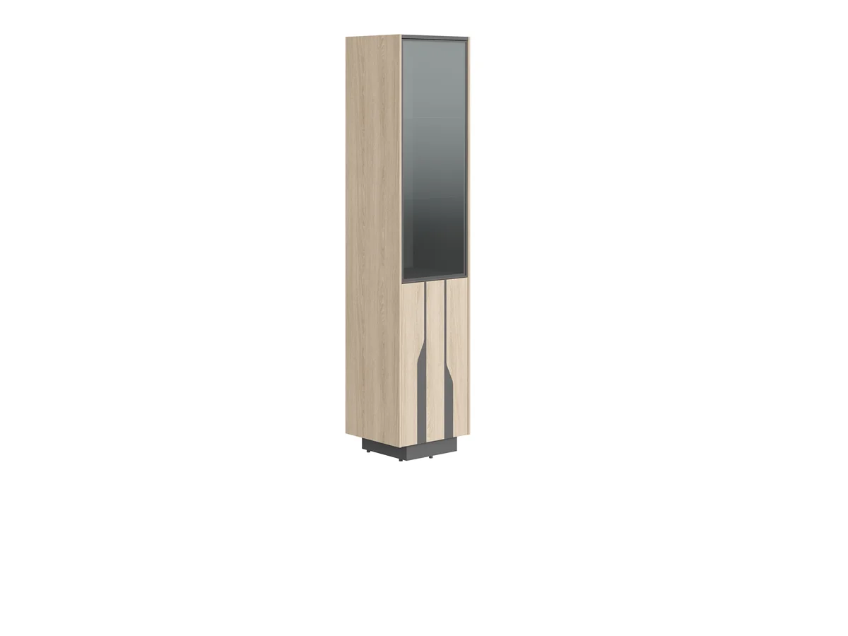 Шкаф колонка выс. с комбинированными дверями СФ-574313 Дуб светлый/Черный графит 464х430х2100 LINE