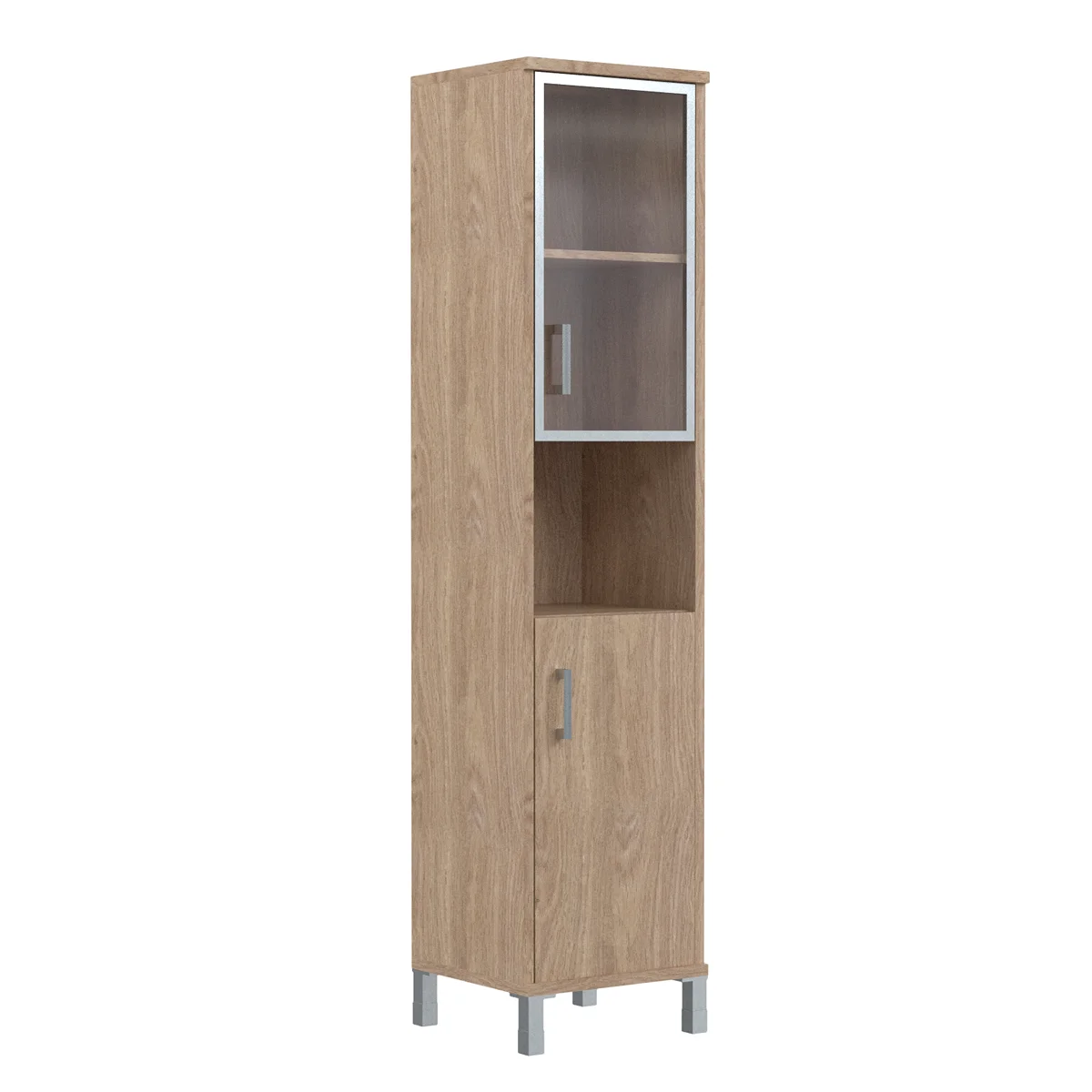 Шкаф-колонка высокая с малой стеклянной дверью в AL-рамке и глухой B 431.9(R) Дуб Бофорд 475х450х205