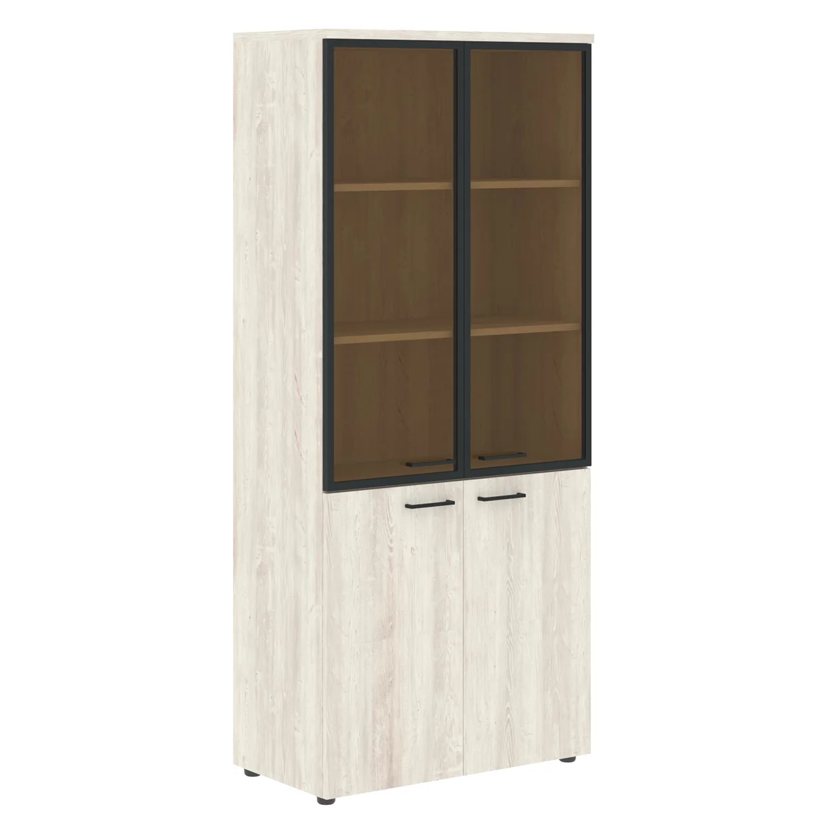 Широкий комбинированный шкаф XTEN для офисного или домашнего использования. Размеры - 856х1955х432 мм, цвет - Сосна Эдмонт. Шкаф имеет солидный топ – 25 мм. Оснащен 5 полками, две нижние полки закрыты дверцами из ЛДСП, три верхние – стеклянными дверцами со стильной матовой тонировкой. На всех дверцах имеются долговечные и стильные металлические ручки. Конструкция шкафа оснащена прочными силовыми креплениями – эксцентриковыми стяжками. Регулируемые по высоте опоры обеспечат шкафу устойчивость на неровном полу.