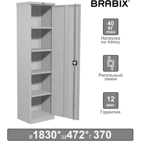 Шкаф металлический для документов Brabix MK 18/47/37-01 1830х472х370мм, 4полки