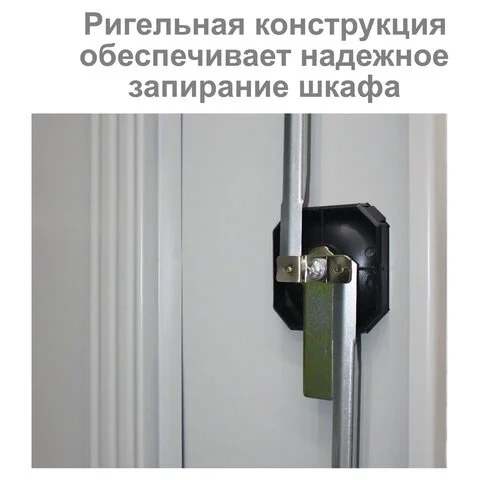 Оригинальная конструкция ригелей из оцинкованной стали и пластиковые втулки обеспечивают бесшумный ход дверей и надежное запирание шкафа.