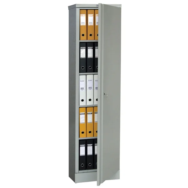 Имеет распашную дверь, ключевой замок, регулируемые полки(4 шт.), фурнитуру. Обычно используется для хранения архивной документации в государственных и частных организациях. - предназначены для хранения больших объемов документации, служебной и деловой информации