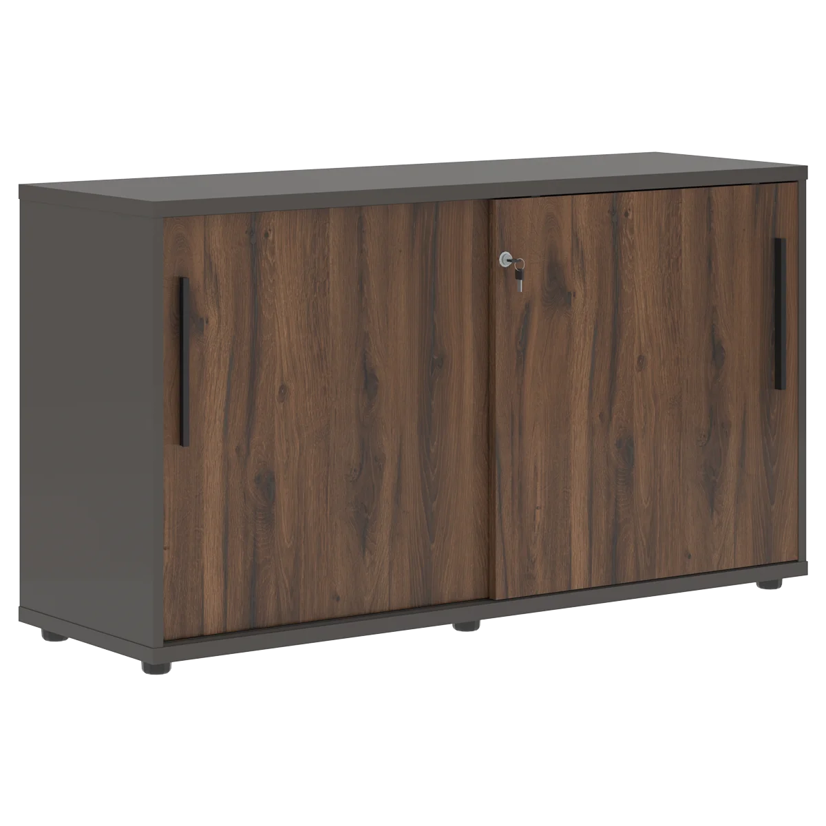 Шкаф низкий с дверьми купе ELC 1343 Дуб Денвер тёмный/Черный/Мокко 1346х430х750 EDIS