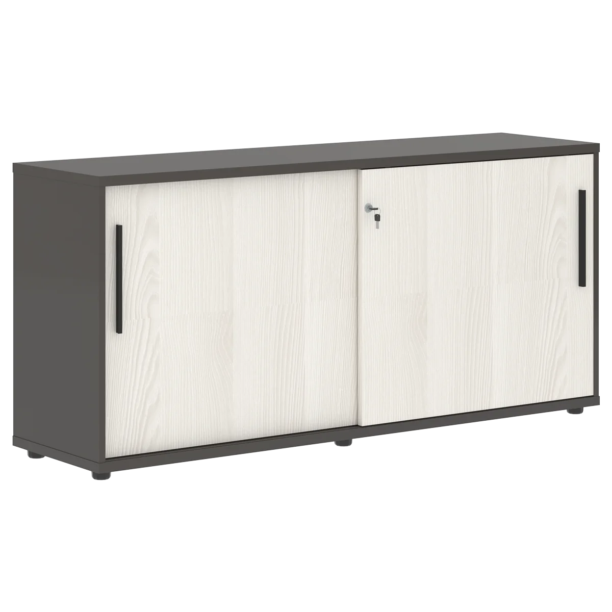 Шкаф низкий с дверьми купе ELC 1643 Ясень Траун/Черный/Мокко 1606х430х750 EDIS