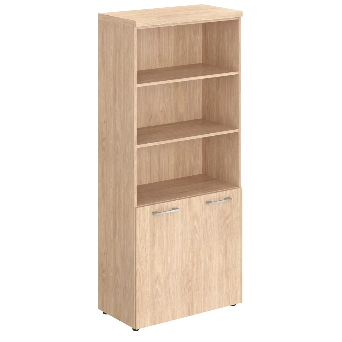 Солидный и широкий шкаф-стеллаж TORR-Z для офисного или домашнего использования. Размеры - 856х1968х450 мм, цвет – Дуб Девон. Данная модель выполнена в современном и эффектном дизайне, благодаря чему придаст кабинету более презентабельный вид. Шкаф имеет солидный верхний топ 38 мм. Все торцевые поверхности элементов шкафа надежно защищены кромкой ПВХ 2 мм. Оснащен 5 полками, две нижние полки закрыты дверцами из ЛДСП, три верхние – открыты. На дверцах установлены долговечные и стильные металлические ручки. Конструкция шкафа оснащена прочными силовыми креплениями – эксцентриковыми стяжками. Регулируемые по высоте опоры обеспечат шкафу устойчивость на неровном полу.