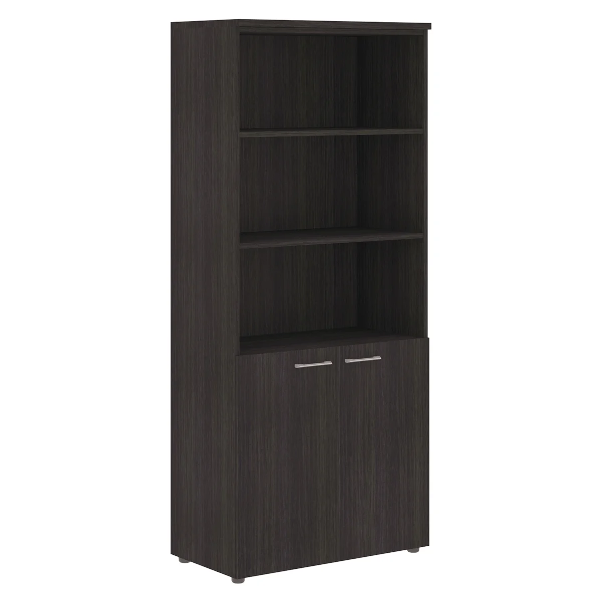 Широкий шкаф-стеллаж XTEN для офисного или домашнего использования. Размеры - 856х1955х432 мм, цвет - Дуб Юкон Модерн. Шкаф имеет солидный топ – 25 мм. Двустворчатый шкаф-стеллаж оснащенный 5 просторными полками, две нижние полки закрыты дверцами из ЛДСП, три верхние - открытые. На дверцах установлены долговечные и стильные металлические ручки. Конструкция шкафа оснащена прочными силовыми креплениями – эксцентриковыми стяжками. Регулируемые по высоте опоры обеспечат шкафу устойчивость на неровном полу.