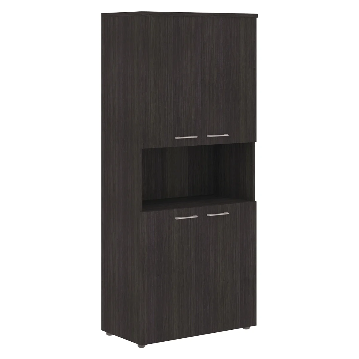 Широкий и высокий шкаф XTEN для офисного или домашнего использования. Размеры - 856х1955х432 мм, цвет - Дуб Юкон Модерн. Оснащен 5 полками, 2 нижние и 2 верхние отдельно закрываются дверцами из ЛДСП, посередине – открытая ниша. На дверцах установлены долговечные и стильные металлические ручки. Конструкция шкафа оснащена прочными силовыми креплениями – эксцентриковыми стяжками. Надежная защита торцов всех элементов - кромка ПВХ. Регулируемые по высоте опоры обеспечат шкафу устойчивость на неровном полу.