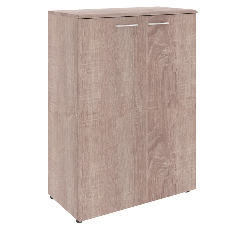 Широкий шкаф средний WAVE для офисного или домашнего использования. Размеры - 856х1184х432 мм, цвет - Дуб Сонома. Шкаф имеет солидный топ из МДФ – 19 мм. Двустворчатый шкаф оснащенный 3 просторными полками, которые закрыты дверцами из ЛДСП под цвет конструкции. На дверцах установлены долговечные и стильные металлические ручки. Конструкция шкафа оснащена прочными силовыми креплениями – эксцентриковыми стяжками. Регулируемые по высоте опоры обеспечат шкафу устойчивость на неровном полу.