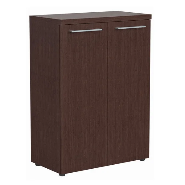 Широкий средний шкаф ALTO для офисного или домашнего использования. Размеры - 850х1201х456 мм, цвет - Венге Магия. Двустворчатый шкаф оснащенный 3 просторными полочками, которые закрываются дверцами из ЛДСП под цвет конструкции. На дверцах установлены стильные широкие металлические ручки. Конструкция оснащена прочными силовыми креплениями – эксцентриковыми стяжками. Все торцы основных элементов надежно защищены кромкой ПВХ – 2 мм. Регулируемые по высоте опоры обеспечат шкафу устойчивость на неровном полу.