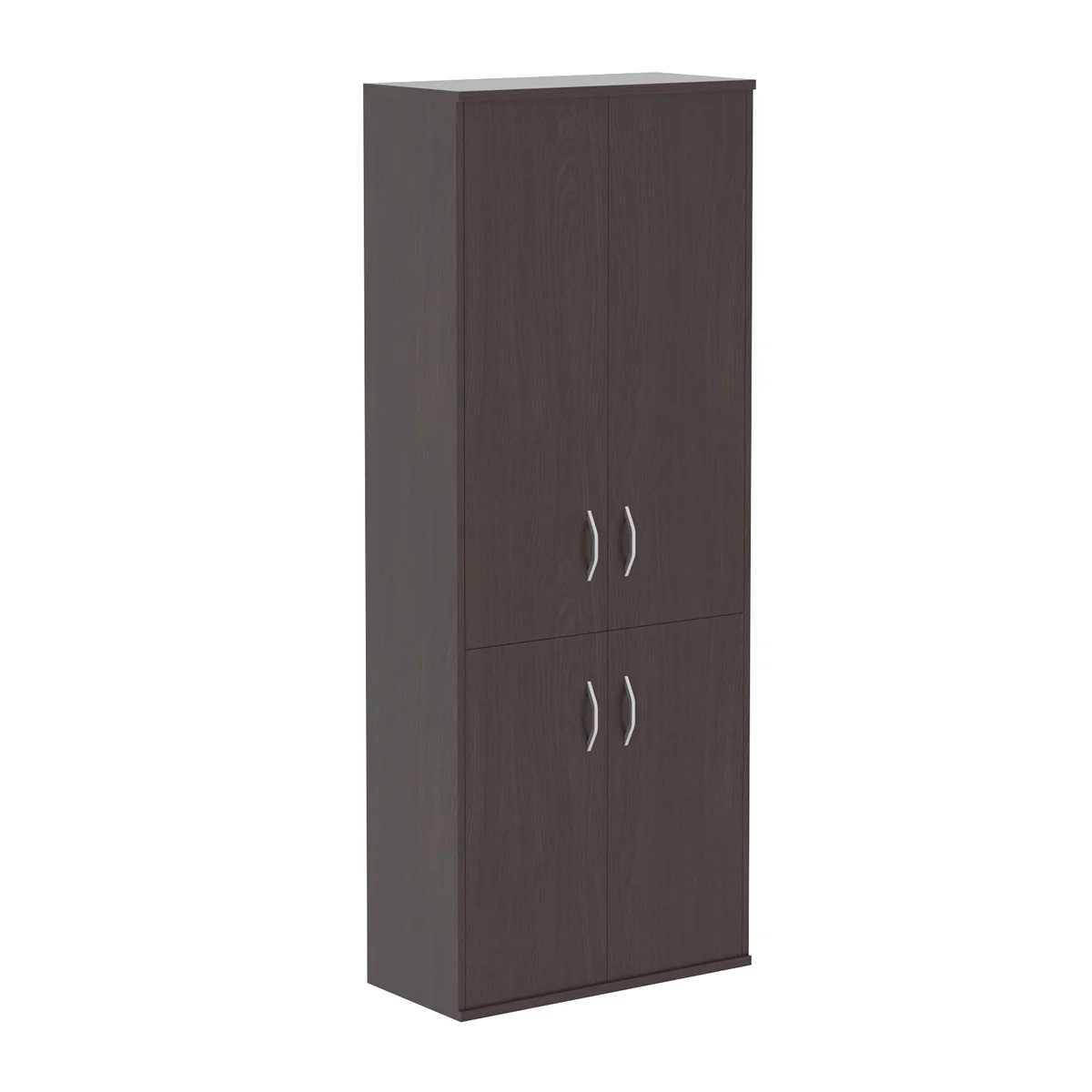 Широкий и высокий шкаф IMAGO для офисного или домашнего использования. Размеры - 770х1975х365 мм, цвет - Венге Магия. Двустворчатый шкаф, для удобства дверцы из ЛДСП разделены на две секции, которые отдельно закрывают три верхние и две нижние полки. Шкаф оснащен регулируемыми опорами для компенсации неровностей пола.