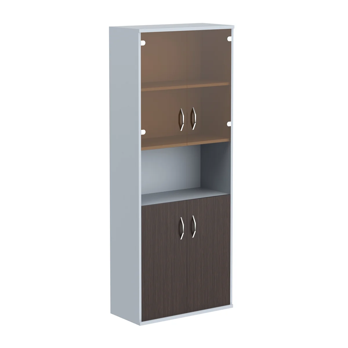 Шкаф высокий Skyland Imago СТ-1.4, с малыми стеклянными и глухими дверьми, венге-магия/металлик, 770х365х1975мм