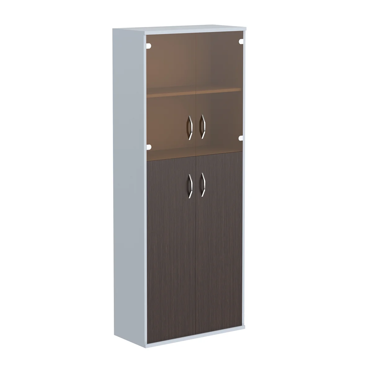 Универсальный комбинированный шкаф IMAGO для офисного или домашнего использования. Размеры -770х1975х365 мм, цвет – Венге Магия/Металлик. Оснащен 5 просторными полочками, 3 нижние закрываются контрастными дверцами из ЛДСП, 2 верхние – стеклянными дверцами. На всех дверцах установлены стильные металлические ручки. Конструкция оснащена прочными силовыми креплениями – эксцентриковыми стяжками. Все торцы основных элементов шкафа надежно защищены кромкой ПВХ – 2 мм. Регулируемые по высоте опоры обеспечат устойчивость на неровном полу.