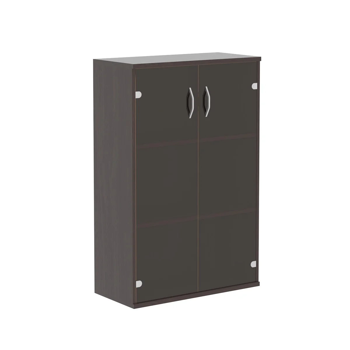 Универсальный среднегабаритный двустворчатый шкаф IMAGO для офисного или домашнего использования. Размеры - 770х1200х365 мм, цвет - Венге Магия. 3 полки, стеклянный фасад, надежная защита торцевых поверхностей - кромка ПВХ 2 мм. Шкаф оснащен регулируемыми опорами для компенсации неровностей пола.