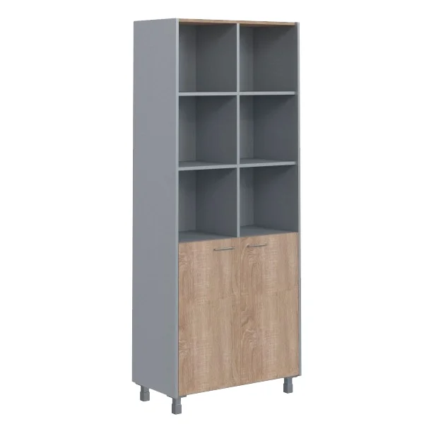 Шкаф высокий Skyland Offix NEW OHC 87.5, дуб сонома светлый/металлик, 874х450х2147мм, с комплектом малых глухих дверей