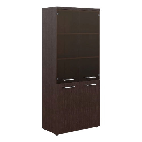 Солидный и широкий комбинированный шкаф TORR-Z для офисного или домашнего использования. Размеры - 856х1968х450 мм, цвет - Венге Магия. Данная модель выполнена в современном и эффектном дизайне, благодаря чему придаст кабинету более презентабельный вид. Шкаф имеет солидный верхний топ 38 мм. Все торцевые поверхности элементов шкафа надежно защищены кромкой ПВХ 2 мм. Двустворчатый шкаф оснащенный 5 просторными полками, две нижние полки закрыты дверцами из ЛДСП, три верхние – стеклянными дверцами. На всех дверцах имеются долговечные и стильные металлические ручки. Конструкция шкафа оснащена прочными силовыми креплениями – эксцентриковыми стяжками. Регулируемые по высоте опоры обеспечат шкафу устойчивость на неровном полу.