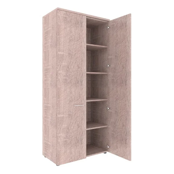 Высокий и широкий комбинированный шкаф XTEN для офисного или домашнего использования. Размеры - 856х1955х432 мм, цвет - Дуб Сонома. Шкаф имеет солидный топ – 25 мм. Двустворчатый шкаф оснащенный 5 полками, которые закрыты дверцами из ЛДСП под цвет шкафа. На дверцах установлены долговечные и стильные металлические ручки. Конструкция шкафа оснащена прочными силовыми креплениями – эксцентриковыми стяжками. Регулируемые по высоте опоры обеспечат шкафу устойчивость на неровном полу.