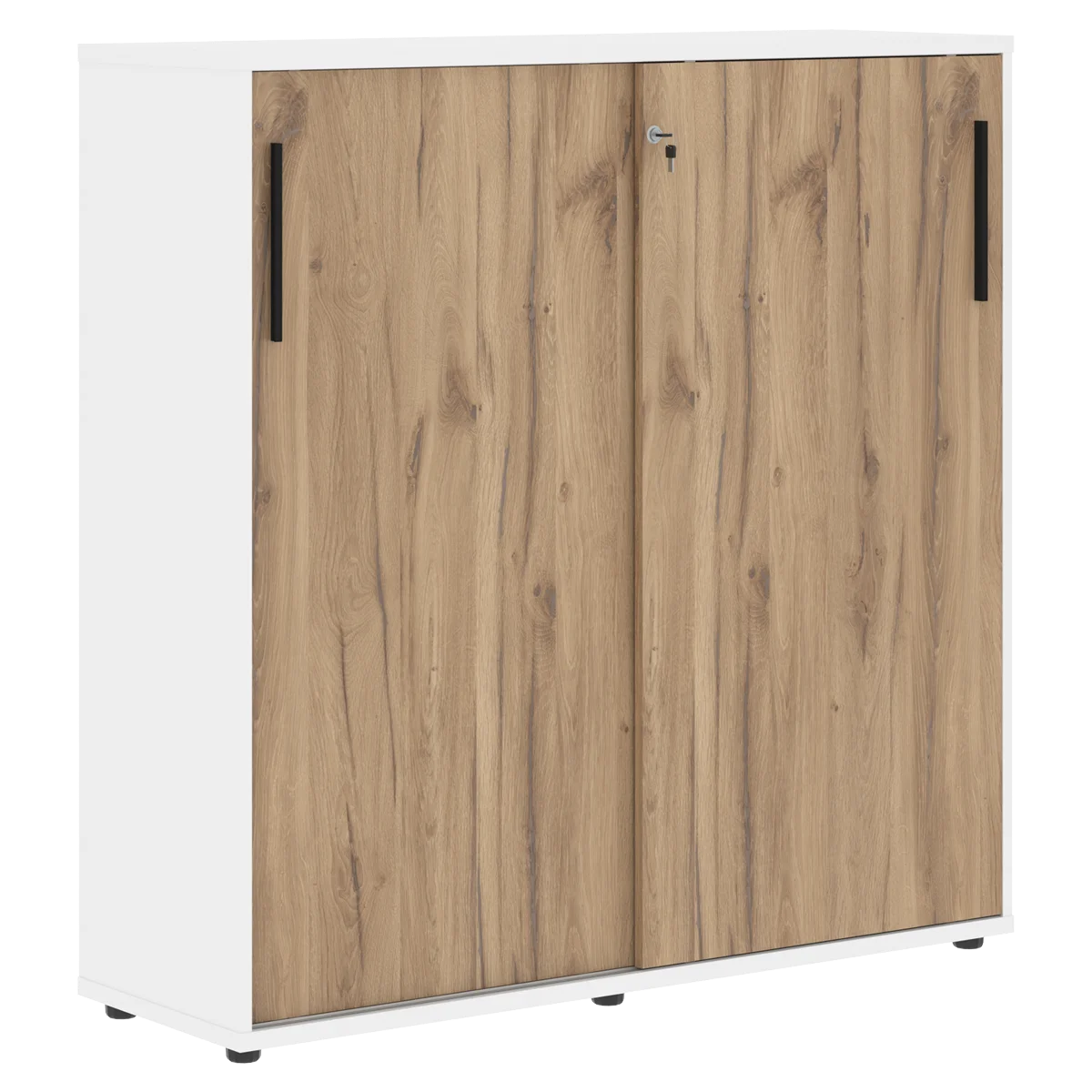 Шкаф средний с дверьми купе EMC 1343 Дуб Денвер светлый/Черный/Белый 1346х430х1355 EDIS