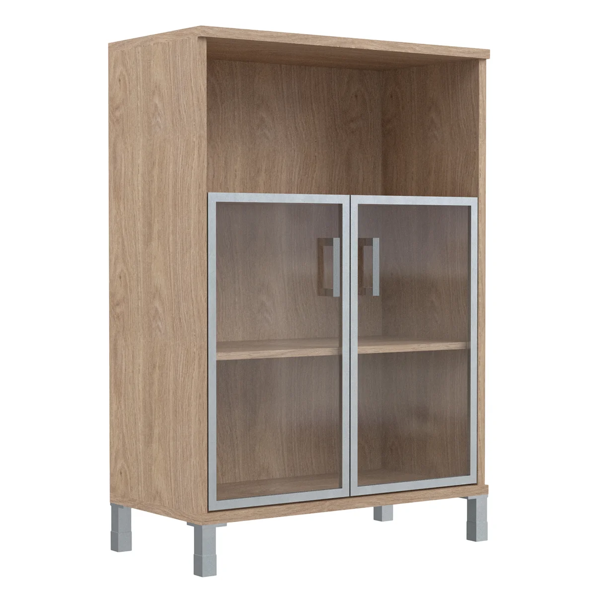 Шкаф средний с малыми стеклянными дверьми в AL-рамке B 420.4 Дуб Бофорд 900х450х1286 BORN