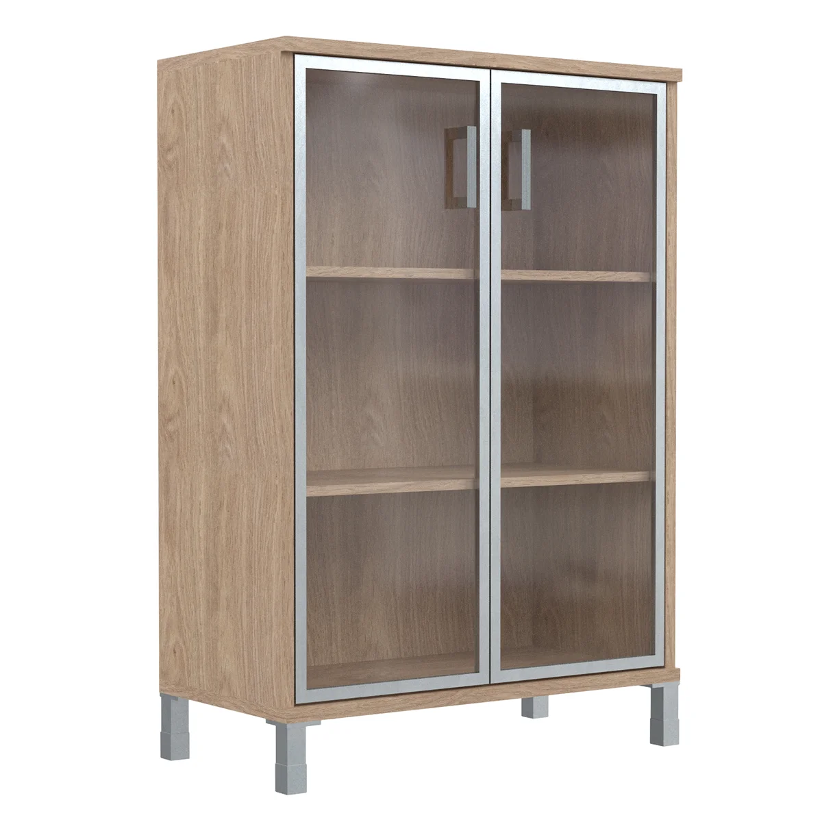 Шкаф средний со стеклянными дверьми в AL-рамке B 420.7 Дуб Бофорд 900х450х1286 BORN
