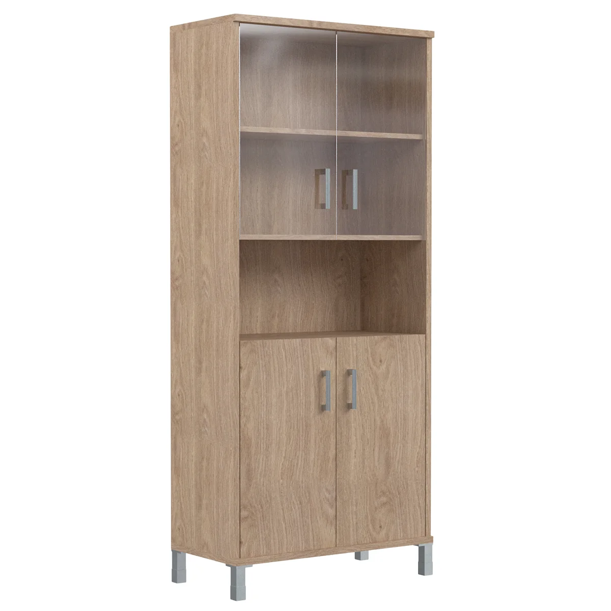 Шкаф высокий с малыми стеклянными и глухими дверьми B 430.10 Дуб Бофорд 900х450х2054 BORN