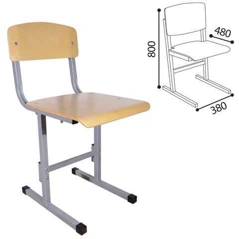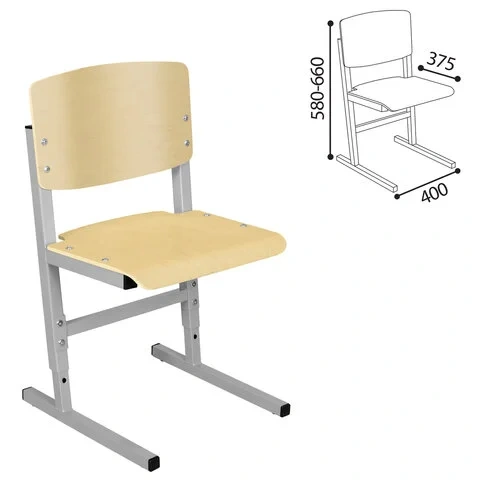 Стул ученический Дэми СУТ.05-01 400х375х660-740мм, рост 4-6, серый каркас, фанера лак, регулируемый