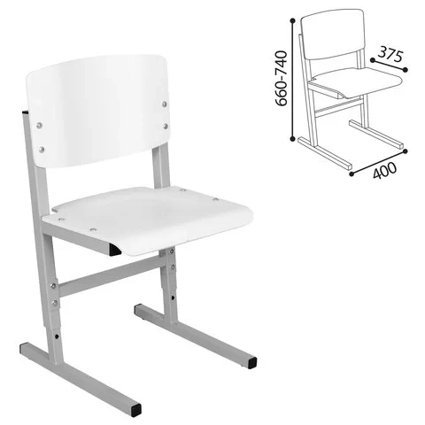 Стул ученический Дэми СУТ.05 400х375х580-660мм, рост 2-4, серый каркас, фанера белая, регулируемый