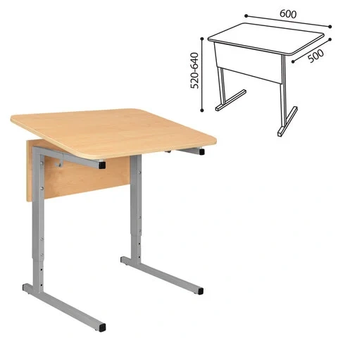 Парта школьная Дэми СУТ.54-01 600х500х520-640мм, рост 2-4, серый каркас, ЛДСП клён, 1-местный