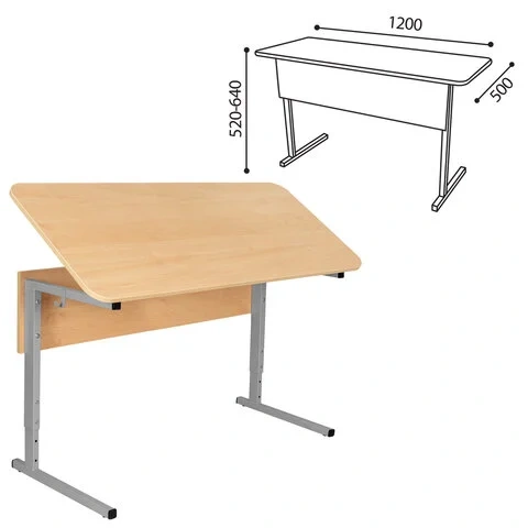 Парта школьная Бюджет ЛДСП, бук, каркас серый, 1200х500х640-760мм, регулируемая