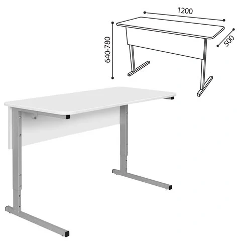 Парта школьная Дэми СУТ.55 1200х500х640-780мм, рост 4-6, серый каркас, ЛДСП белая, 2-местный